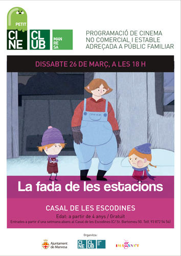 Aquest dissabte 26 de març a les 18 h al Casal de les Escodines es projectarà “La fada de les estacions” per a infants a partir de 4 anys. Les entrades gratuïtes es poden adquirir anticipadament al Casal de les Escodines (C/ St. Bartomeu, 50; Telèfon 938725454, de 9 a 14 h i de 16 a 20.30 h i el dissabte de 10 a 14 h i abans de la projecció.