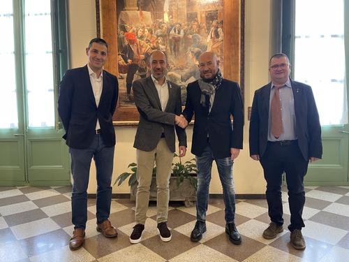 L’alcalde de Manresa, Marc Aloy Guàrdia, i el president del Bàsquet Manresa SAE, Josep Sáez Mateos, han signat aquest dilluns al matí un conveni de col·laboració per a la promoció de la imatge de la ciutat, que amb l’equip viatja a totes les ciutats ACB de l’Estat espanyol i, aquesta temporada, també a les dels equips europeus que juguen la Basketball Champions League. L’acte de signatura ha comptat també amb el regidor d’Esports, Antoni Massegú Calveras, i amb el gerent del club, Carles Sixto Figuls.