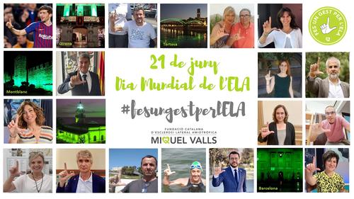 Demà, 21 de juny, se celebra el Dia Mundial de l'Esclerosi Lateral Amiotròfica (ELA). Per aquest motiu, diversos municipis de Catalunya il·luminaran edificis o elements de la ciutat de color verd amb l’objectiu de sensibilitzar sobre la malaltia i donar suport als afectats i les seves famílies.