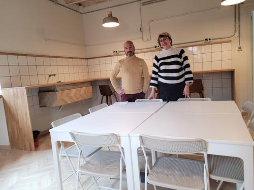 (*) Fotografia: La regidora de Cultura i Festes, Anna Crespo Obiols, i el dissenyador Òscar Soler Sánchez, al nou espai de coworking creat al Casal de les Escodines