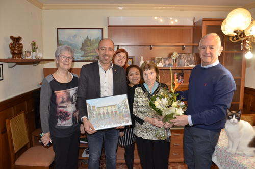 L’alcalde de Manresa, Marc Aloy Guàrdia, ha visitat aquest migdia Joaquima March Perramon, nascuda el 10 de febrer de 1923, a Manresa, per lliurar-li un obsequi i un ram de flors en nom del consistori per commemorar el seu centenari.