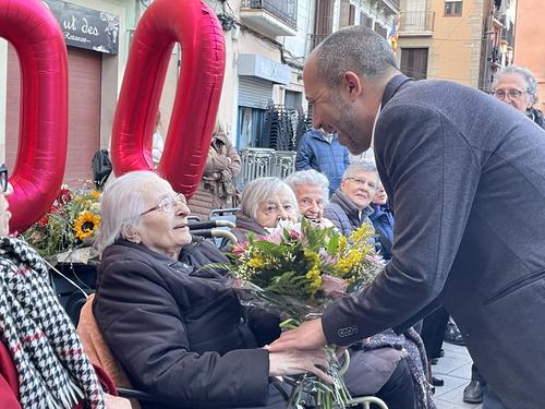 L’alcalde de Manresa, Marc Aloy Guàrdia, va homenatjar ahir a la tarda Carme Boix Bernat, nascuda el 14 de febrer de 1923, a Montsó (Osca), per lliurar-li un obsequi i un ram de flors en nom del consistori per commemorar el seu centenari.