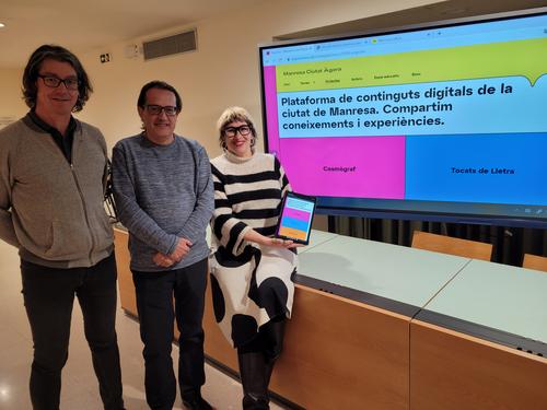 (*) D'esquerra a dreta, Pere Palà, Antoni Llobet i Anna Crespo, avui, durant la presentació del nou portal Manresa Ciutat Àgora.
