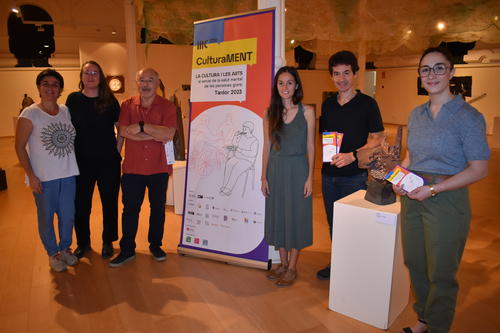 (*) Peu de foto: Representants de les entitats organitzadores del projecte CulturaMent, a l ‘exposició de ceràmica de Montserrat Riu, al Casino. Emma Oliveras Torras (tècnica de Cultura); Ariadna Torres Giménez (equip de coordinació de CulturaMENT 2023); Enric Roca Carrió (Cineclub Manresa); Marta Curtich Serrato (Cal Gras); Dani Bañeza Soler (Xarxa de Pobles Creatius); i Tània Infante Martínez (regidora de Cultura i Llengua de l’Ajuntament de Manresa).