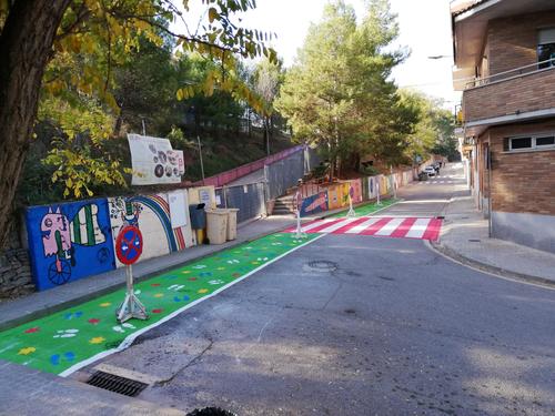 L’actuació consisteix en la instal·lació de senyalització vertical d'advertiment de la zona escolar; el reforç de la senyalització horitzontal dels passos de vianants existents a la cruïlla del carrer Pirineu amb el carrer Canigó, pintant catifes de color vermell sota dels passos de vianants i pintant els pictogrames de zona escolar a la calçada abans dels mateixos; la instal·lació d’una barana a la cruïlla; també es repintaran els passos de vianants existents del carrer Pirineu i del carrer Cadí, així com dels aparcaments de motos abans dels passos de vianants que milloren la visibilitat entre conductors i vianants.