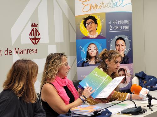 La bossa Emmiralla’t l’han presentat aquest matí la regidora d'Infància i Joventut i de Feminismes i LGTBI, Isabel Sánchez Pulido, i la regidora de Drets Socials i Persones Grans, Mariona Homs Alsina, en roda de premsa a l’Ajuntament de Manresa. També s’ha comptat amb la presència de Cristina Grasset Navarro, directora de l’Institut Pius Font i Quer, que ha explicat “Emmiralla’t al Pius”, un exercici pilot que ha permès a alumnes de l’institut treballar la pressió estètica i els trastorn alimentaris i que ha tingut molt bona acollida entre els joves.