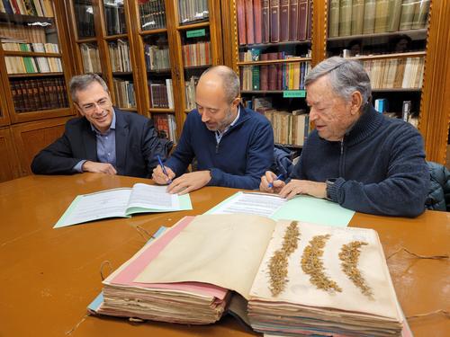 (*) Peu de foto: L'alcalde de Manresa, Marc Aloy Guàrdia, i el president del Centre Excursionista de la Comarca del Bages, Melcior Serra Singla, en el moment de la signatura de cessió de l'herbari.