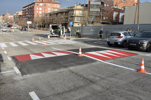 L’actuació es completa amb la millora de la senyalització dels passos de vianants i el repintat de les marques vials de l’entorn dels nous reductors de velocitat.