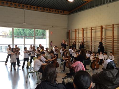 Ahir, 24 nens i nenes de tercer primària es va estrenar com a intèrprets de violí, viola i violoncel, davant un auditori ple de companys de classe, les seves famílies i membres del professorat, que van escoltar amb emoció el concert.
