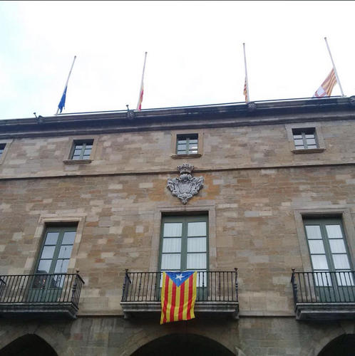 L’Ajuntament de Manresa ha col·locat les banderes de l’edifici consistorial a mig pal en senyal de dol per l’accident de l’avió Airbus-320, de la companyia alemanya Germanwings, que volava entre Barcelona i Düsseldorf, i que s’ha estavellat aquest matí als Alps francesos.