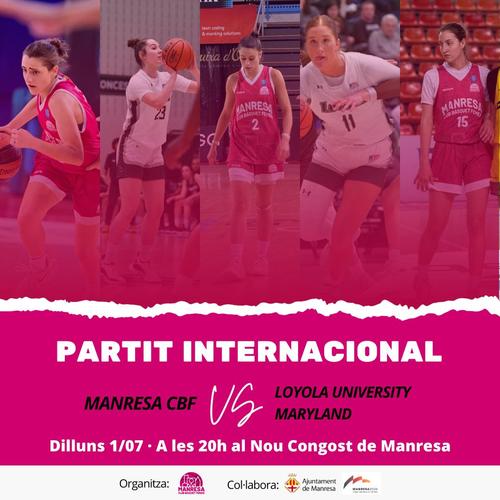 El Nou Congost de Manresa acollirà aquest pròxim dilluns, 1 de juliol, a les 8 del vespre, un partit amistós entre l’equip del Manresa Club de Bàsquet Femení i l’equip femení nord-americà del Loyola University Maryland, formació que està de gira per Europa, i que ha fet parada a Manresa, atesa la vinculació d’aquesta universitat de la Companyia de Jesus amb la ciutat on Sant Ignasi de Loiola va escriure els exercicis espirituals fa 502 anys.
