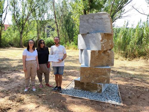 (*) Peu de foto: Tània Infante, Roser Oduber i Mario Molins, amb l'escultura que ha quedat instal·lada aquest dimarts