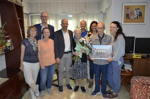 La visita s’ha fet al carrer Abat Oliba, on resideix. L’homenatjada ha estat acompanyada per familiars que no s’han volgut perdre aquesta celebració tan especial.