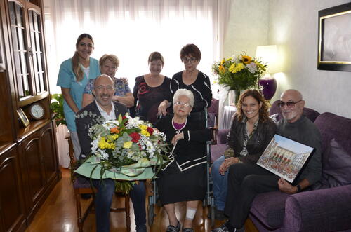 La visita s’ha fet al carrer Sant Fruitós, on resideix. Durant la celebració ha estat acompanyada per familiars i amics que no s’han volgut perdre aquest homenatge tan especial.