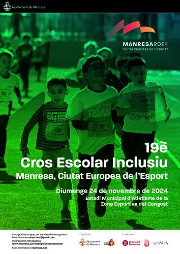 El diumenge 24 de novembre, la zona esportiva el Congost tornarà a ser un any més l’escenari d’una gran festa de l’atletisme amb la celebració del 19è Cros Escolar Inclusiu Manresa Ciutat Europea de l’Esport. Aquesta prova és puntuable per a la Fase Comarcal de Cros dels Jocs Esportius Escolars de Catalunya i està organitzada conjuntament per l’Ajuntament de Manresa i el Consell Esportiu del Bages amb la col·laboració del Club Atlètic Manresa i l’Escola Jeroni de Moragas de la Fundació Ampans.