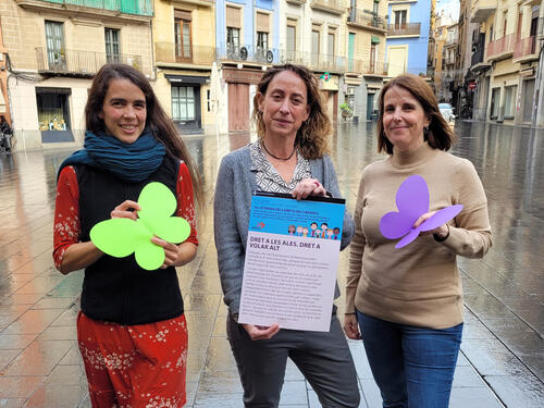 (*) Peu de foto: (d'esquerra a dreta) Laia Ribes Soriano del CAE, la regidora d'Infància i Joventutat, Isabel Sánchez Pulido i la tècnica d'infància de l'Ajuntament de Manresa, Marta Serrat Bagué en la presentació de la 14a Setmana dels Drets dels Infants