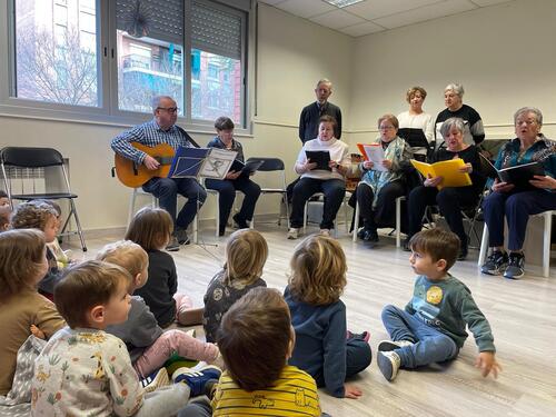 (*) Peu de foto: la cantada de nadales és una activitat que fomenta el contacte entre generacions (autoria: Llar d'Infants La Lluna).