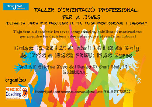L’Oficina Jove del Bages, impulsada pel Departament de Benestar Social i Família de la Generalitat de Catalunya i gestionada per l’Ajuntament de Manresa amb la col·laboració del Consell Comarcal del Bages, proposa per aquest mes d’abril una sèrie de propostes atractives per als joves amb l’objectiu d’oferir-los informació i assessorament sobre temes d’interès així com la possibilitat ce conèixer propostes artístiques d’interès.