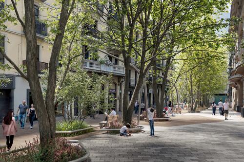 Quan finalitzin les obres, el novembre de 2026, en el tram que es convertirà en illa de vianants –entre Muralla del Carme i Neus Català Pallejà– hi haurà un espai central dedicat als arbres i a la vegetació, i també amb espais de repòs, mentre que els laterals, a tocar dels comerços, es reservaran per al passeig de la ciutadania. Tota l’illa de vianants tindrà paviment a un sol nivell amb un disseny que permetrà que l’aigua de la pluja s’infiltri cap al terreny a les zones arbrades i vegetades.