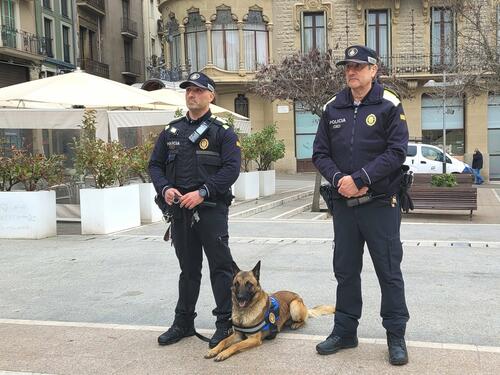(*) Peu de foto: l'Otto, el gos del cos policial, amb una patrulla a Sant Domènec