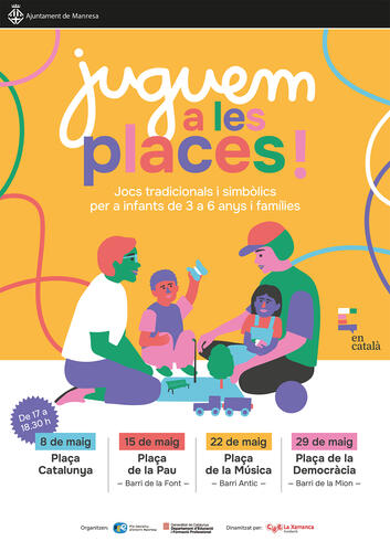 Cada dijous del mes de maig, una plaça de Manresa es convertirà en un escenari de diversió i aprenentatge amb la recuperació de jocs tradicionals per a infants d’entre 3 i 6 anys i les seves famílies amb la iniciativa Juguem a les Places. L’objectiu és promoure activitats educatives fora de l’horari escolar en aquesta franja d’edat, reforçar l’ús del català i la participació en activitats de la cultura catalana.