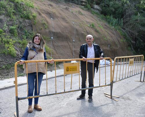 (*) La regidora de Via Pública, Mariana Romero, i el regidor d’Acció Comunitària, Lluís Vidal Sixto, al camí al barri de Sant Pau, un cop finalitzats els treballs d’estabilització del talús.