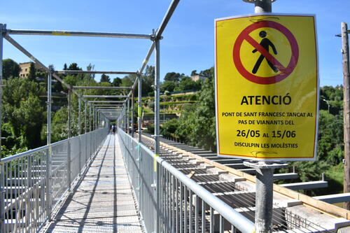Del 26 de maig al 15 de juny es tancarà el pas de vianants del pont amb motiu dels treballs de formigonatge i d’instal·lació de prelloses.