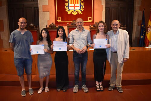 (*) Peu de foto: Alumnat del PTT del darrer curs han rebut els diplomes de mans de l’alcalde Marc Aloy i dels regidors Pol Huguet i Lluís Vidal Sixto.