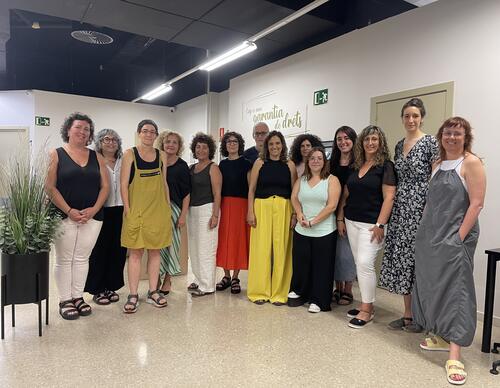 (*) Peu de foto: La regidora Homs (al mig) acompanyada del personal municipal de Drets Socials
