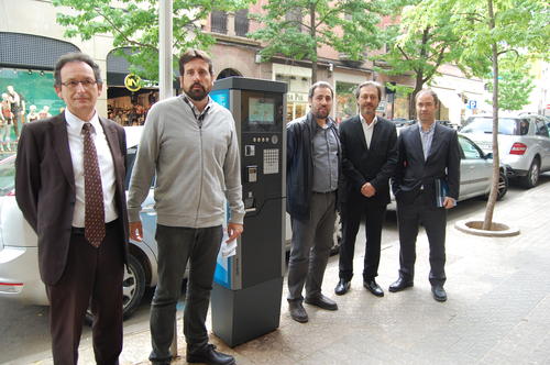 La presentació dels nous parquímetres s’ha fet aquest matí al carrer Guimerà amb la presència del regidor de Medi Ambient i Sostenibilitat de l’Ajuntament de Manresa, Jordi Serracanta; del regidor de Mobilitat, Ramon Bacardit; del delegat d'Eysa a Catalunya, Josep Lluis Junyent; del conseller delegat de Meypar (Grup Oliva Torras), Ramon Mandaña; i del responsable tècnic de l’empresa subministradora, Carles Arroyo.
