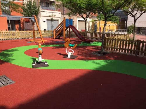 L’actuació ha consistit en la renovació total del paviment de cautxú, el repàs dels elements de jocs existents i el tancament perimetral amb tanca de fusta.