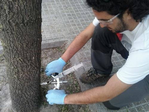 El sistema que utilitza l'Ajuntament de Manresa amb Moix Serveis i Obres SL, empresa concessionària dels tractaments fitosanitaris, és el de injecció directa sense trepant. Consisteix en injectar en el tronc de l'arbre una substància, que pot ser nutritiva o fitosanitària, que es distribueix per tot el sistema vascular de la planta.