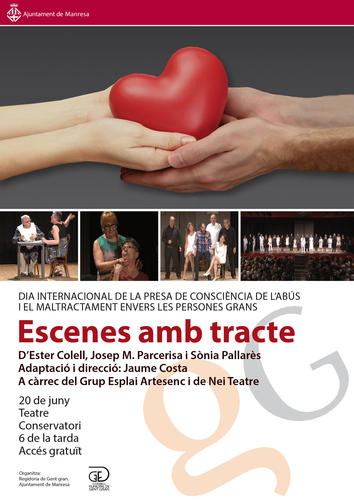 Amb motiu de la celebració del Dia internacional de la presa de consciència de l'abús i el maltractament envers les persones grans (el passat dia 15 de juny), l’Ajuntament de Manresa ha programat per a aquest dissabte la representació de l'obra Escenes amb tracte.