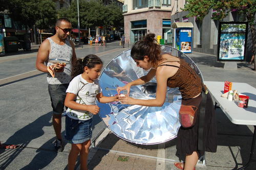 A la plaça Sant Domènec s’ha repartit xocolata desfeta cuinada amb una cuina solar, i els més petits han jugat a jocs de taula sobre el tema de l’estalvi energètic