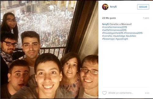 La primera edició del I Concurs de selfies de la Festa Major de Manresa 2015 ja té els dos guanyadors que han estat escollits entre un total de 38 fotografies. El guanyador del primer premi ha estat l’usuari ferry5 amb un selfie del Correfoc des d’un balcó de la plaça Major i el segon premi ha estat l’usuari ffranch83 amb un selfie fet al mig de la mostra del Correfoc amb el drac de coll llarg.