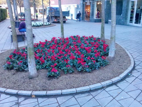 Les espècies plantades són ciclamens i pensaments, plantes amb flor resistents a les temperatures hivernals
