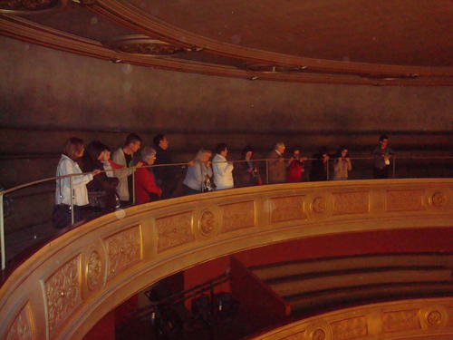 A continuació, el personal tècnic del Kursaal va descobrir les parts més desconegudes del teatre, des de la llotja del galliner fins al darrera de l'escenari i van explicar el funcionament del teatre i els usos que té.