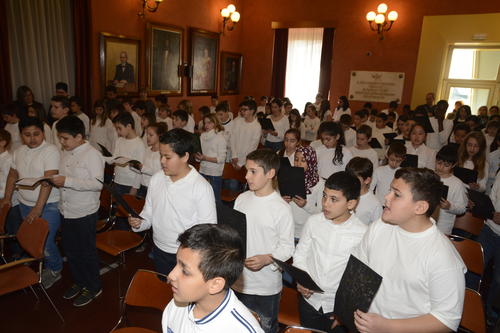 Un emocionant cant dels Goigs de la Llum, amb direcció musical de Núria Pedrico i Estfer Comas, i interpretat per tots als assistents posats dempeus d’un Saló de Sessions de l’Ajuntament de Manresa ple de gom a gom, ha estat la culminació d’un excel·lent pregó infantil protagonitzat aquest matí per l’alumnat de 5è de primària de la l’escola Flama i de 6è de primària de les escoles Ave Maria i la Font.