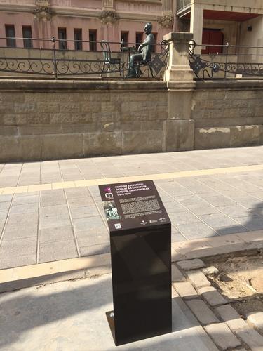 La placa vol atreure l’atenció dels vianants cap a l’escultura i difondre el coneixement sobre la figura de l’escriptor i manresà il·lustre que va sobreviure al terror nazi i va escriure per a denunciar-lo.
