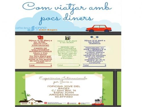 Atès que durant els mesos de març i abril s’obren les inscripcions per participar en alguns projectes de voluntarietat, l’Oficina Jove del Bages ha programat tres conferències sobre mobilitat internacional per tal d’oferir als joves una forma de viatjar més econòmica i de compromís social i apropar-los a algunes de les entitats que gestionen aquestes activitats.