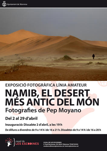 Demà dissabte 2 de d’abril, a les 19 h, s’inaugura al Casal de les Escodines “Namib, el desert més antic del món”, exposició fotogràfica de línia amateur de Pep Moyano que es podrà visitar fins el 29 d’abril.