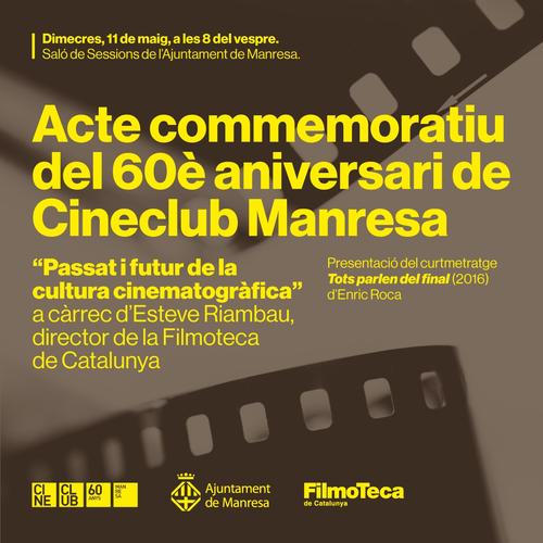 Cineclub Manresa és un dels més antics de Catalunya que ha programat ininterrompudament. Aquest curs 2015-2016 se celebra el 60è aniversari de l’entitat, amb una sèrie d’activitats que s’afegeixen a la programació i col·loquis habituals.