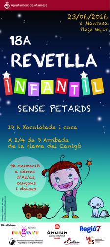 Seguidament, quan finalitzi l’acte de l’arribada de la Flama del Canigó, cap a les nou del vespre a la Plaça Major, començarà la 18ena edició de la revetlla de Sant Joan infantil organitzada per l’Ajuntament de Manresa, amb la col·laboració d´Imagina’t .