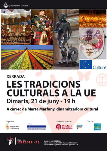 El Casal de les Escodines (C/ St. Bartomeu, 50) ofereix una xerrada a càrrec de la dinamitzadora cultural, Marta Marfany, per difondre les diferents tradicions culturals de la Unió Europea gratuïta i oberta al públic adult. Tindrà lloc el proper dimarts, 21 de juny a les 19 h.