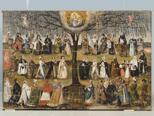 - La pintura, d’autor desconegut i datada de la segona meitat del segle XVII, representa l’Arbre del Roser i fa parella amb un altre quadre que s’exposa a la Sala del Barroc del Museu Comarcal,l’Arbre amb sants i santes dominics. Les dues pintures provenen de l’església de Sant Pere Màrtir, del convent dels dominics de Manresa.