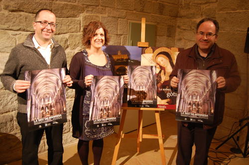 La regidora de Promoció Econòmica, Comerç i Turisme de l’Ajuntament de Manresa, Sílvia Gratacós; Josep Guardiola, director del Grup Josep Guardiola; i el rector de la parròquia de la Seu, Mn Antoni Boqueras; han presentat aquesta tarda una nova oferta de visites turístiques a la basílica de Santa Maria de la Seu.