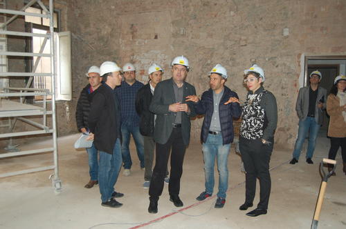 El regidor Marc Aloy ha explicat els treballs que ja han començat al claustre, concretament la retirada de la cornisa de les façanes interiors del claustre, que serà substituïda per una de nova que ja és a punt per col·locar-se, i ha conduït una visita per l’edifici, per tal de mostrar l’estat actual dels espais inclosos en la primera fase, que va començar aquest estiu.