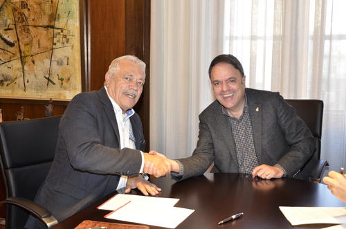 L’alcalde Manresa, Valentí Junyent; i president del Consell Esportiu del Bages, Josep Empez, han signat avui el conveni regulador adreçat al foment i la promoció de les activitats esportives escolars que se celebrin a Manresa.