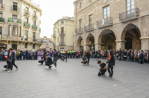 L’acte central del Dia Internacional per a l’Eliminació de la Violència envers les Dones ha consistit en la lectura dels manifestos commemoratius, una actuació musical del Taller de cançons de tots els temps i una acció artística a càrrec d’alumnes de l’institut Lluis de Peguera.