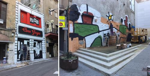L’artista manresà Pep Pérez ha començat a il·lustrar la façana de l’antic Cinema Goya, a la plaça dels Drets, a l’inici del carrer de Sant Andreu. Pérez ha reproduït a la paret del cinema el rètol i l’anunci de la projecció de ‘Plácido’, el film que Luis García Berlanga va rodar a Manresa l’any 1961 i que va comptar amb la participació de molts ciutadans de la ciutat.